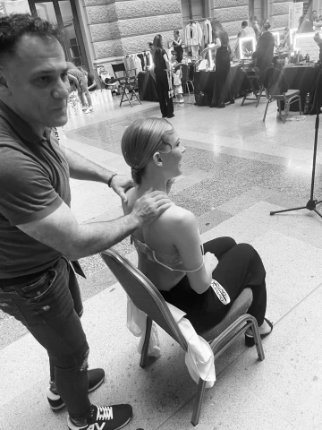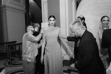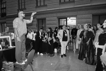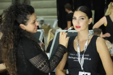 Backstage, která tentokrát zaplnila celé atrium Národního muzea, byla pulzující zónou kreativity a precizní přípravy. Zde se za pomyslnou oponou, mimo zraky návštěvníků, odehrávalo něco, co obvykle zůstává skryto. Make-up artisté, kadeřníci a stylisté pracovali s neuvěřitelným nasazením, aby každý detail byl dokonalý a každý model připraven představit světu to nejlepší z Laffitova ateliéru.